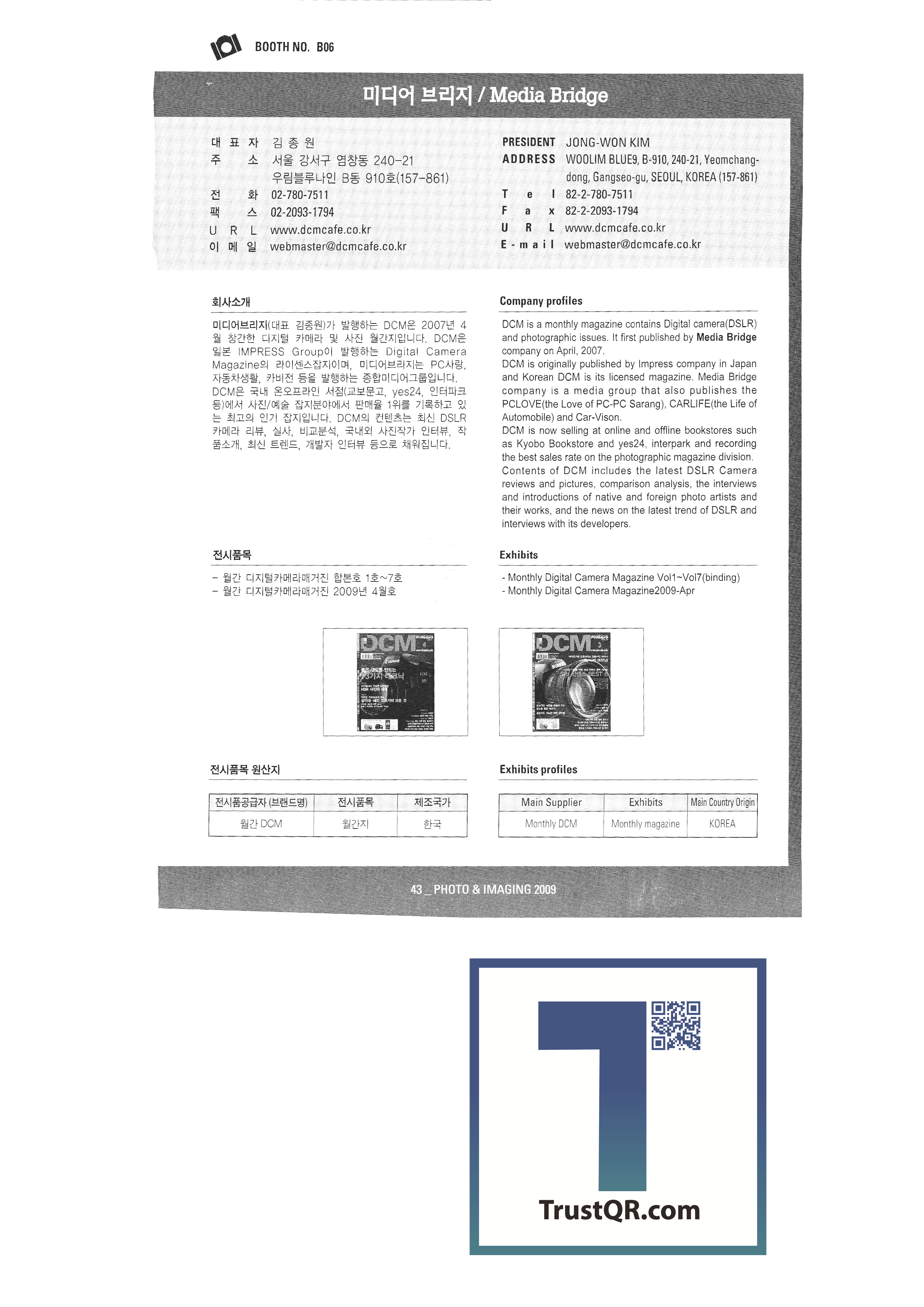 | 모던피아  미디어 브리지 미주리코알프㈜ 본젠 코퍼레이션 부원디지털 사진 사랑 삼양테크 샌디스크 코리아 샵 서원산업테크 세기P&C㈜ 소느로앨범 소니코리아 송화시스템기술㈜ 주식회사 스마트스퀘어 스탑북 ㈜스튜디오클럽 ㈜시큐라인 시프레임 ㈜씨비엘 ㈜씨앤피시스템 씨지코리아 아름다운사진 아트데코 에프엔씨코오롱 여울미디어 영수산업 영일정보 주식회사 예닐곱 예술도서 오로라 라이트 뱅크 올림푸스 한국㈜ 원배경 월간사진 ㈜웰퍼스트  |